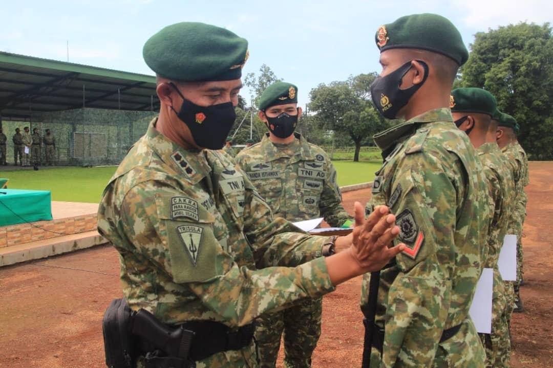 PENBPR18 – Dalam suasana Hari Ulang Tahun Infanteri yang ke-73, Brigif Para Raider 18/Trisula menggelar upacara Kenaikan Pangkat Luar Biasa (KPLB) kepada 13 prajurit terbaik satgas Mandago Raya Yonif Para Raider 502/Ujwala Yudha serta penyerahan 421 piagam penghargaan kepada satgas Monusco Yonif Para Raider 503/Mayangkara, bertempat di lapangan Mabrigif Para Raider 18/Trisula, Jabung, Malang. Minggu (19/12).