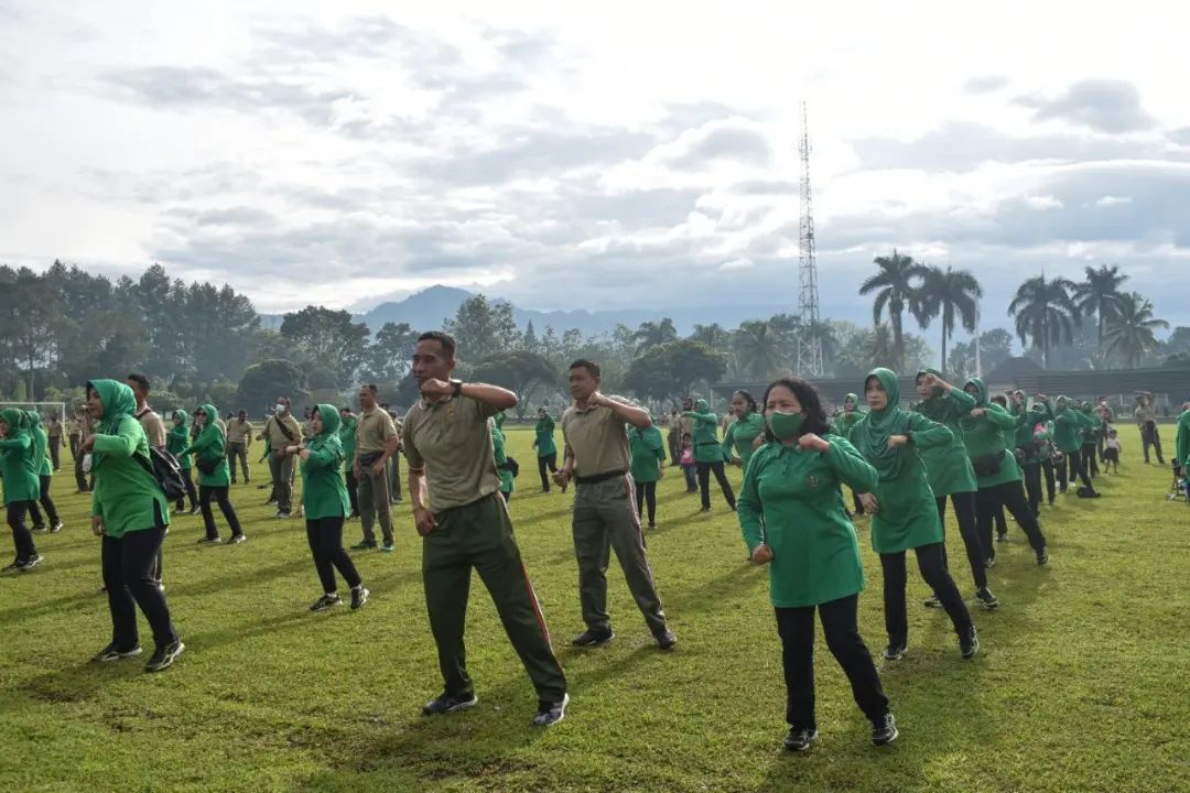 PENBPR18 – Dalam rangka  menjaga kebugaran dan meningkatkan imunitas tubuh di masa pandemi ini, Danbrigif Para Raider 18/Trisula, Kolonel Inf I Gusti Bagus Putu Wijangsa menyelenggarakan  olahraga Bersama Prajurit dan Persit di Lapangan Asrama Brigif Para Raider 18/Trisula. Jabung, Malang, Jumat (28/01).