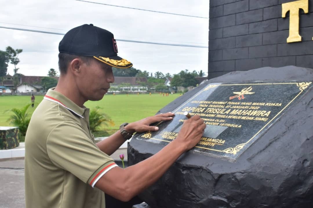 Usai sambutan acara dilanjutkan dengan prosesi penandatanganan prasasti, pemotongan tumpeng dan diakhiri dengan foto bersama dengan latar belakang Gapura “Trisula Mahawira”.