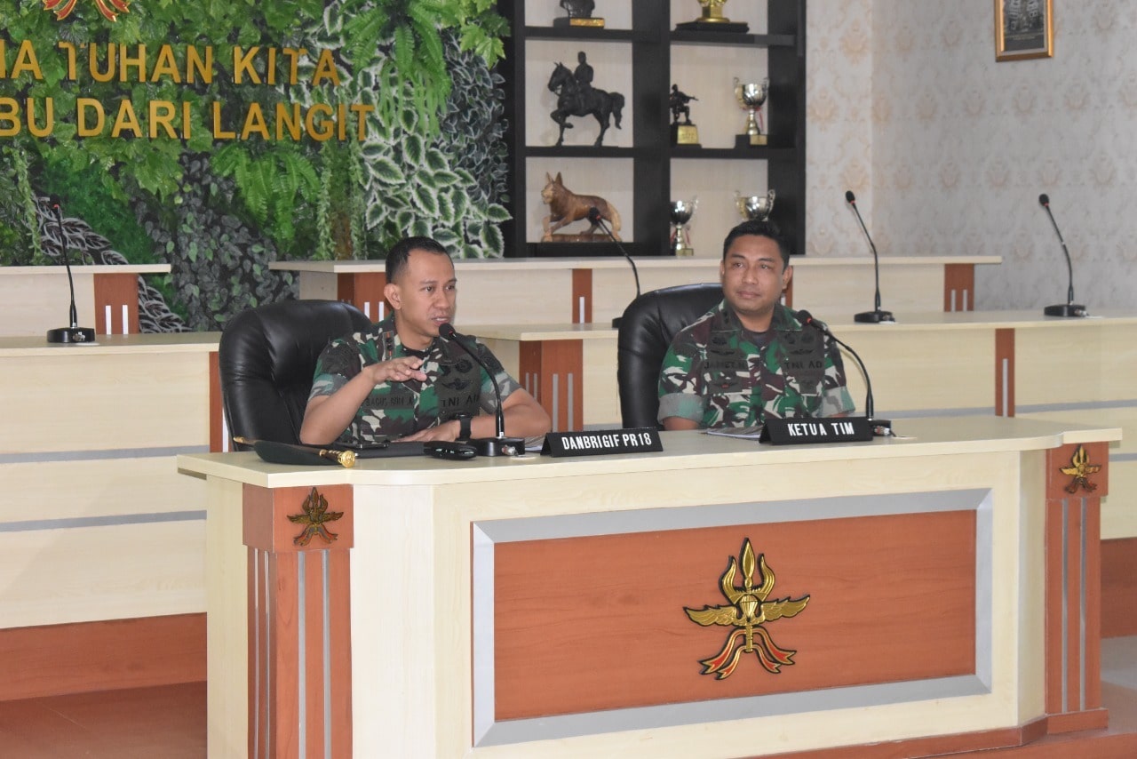 Danbrigif Para Raider 18/Trisula Letkol Inf Bagus Budi Adrianto, S.E., M.Si., M.Tr.(Han) menerima langsung kedatangan Tim Bimtek di Mabrigif Para Raider 18/Trisula kepada Tim Bimtek ZI dari Mabesad dan menyampaikan harapan dengan kegiatan Bimtek ini dapat menyempurnakan produk dan kesiapan Satker Brigif Para Raider 18/Trisula dalam menghadapi penilaian Zona Integritas tingkat nasional oleh Kemenpan RB.